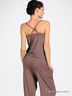 Привлекательный комбинезон на тонких бретелях. Трикотажная тонкая ткань, приятная телу, идеально ложится по фигуре. Линия талии занижена. Два кармана. Низ брюк посажен на резинку.