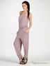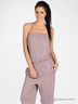 Привлекательный комбинезон на тонких бретелях. Трикотажная тонкая ткань, приятная телу, идеально ложится по фигуре. Линия талии занижена. Два кармана. Низ брюк посажен на резинку.