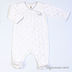Комбинезон на кнопках, украшенный мелкими кружевами и бантиком.