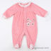 Комбинезон на кнопках, украшенный цветными вставками, рюшей и аппликациями.
