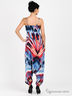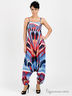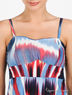 Детали: отрезной лиф сзади посажен на многорядную резинку; застегивается на молнию сбоку; тонкие бретели; низ изделия на резинке; оригинальный крой; яркий принт