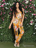 Очаровательный комбинезон с прямого покроя брючинами. Модель с бретелью петлей и глубоким вырезом декольте. Благодаря яркой расцветке Вы не останетесь незамеченной.
