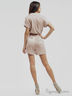 Комбинезон в стиле сафари из шелковистой ткани "чинчи". Модель с застежкой на пуговицы и отложным воротником. Талия оформлена кулиской и поясом для идеальной посадки.