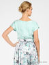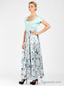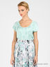 Детали: округлый вырез горловины, короткий цельнокроеный рукав. Юбка: застежка на молнию и на кнопку, втачной пояс, встречные складки