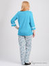 Комплект состоит из двух предметов: кофта и брюки. Кофта с длинными рукавами и фигурным вырезом горловины. Декорирована модель планкой с застежкой на пуговицы. Брюки прямого покроя на эластичном поясе. Изделия выполнены из качественного материала привлекательной расцветки. Отличный вариант на каждый день.