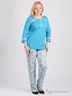 Комплект состоит из двух предметов: кофта и брюки. Кофта с длинными рукавами и фигурным вырезом горловины. Декорирована модель планкой с застежкой на пуговицы. Брюки прямого покроя на эластичном поясе. Изделия выполнены из качественного материала привлекательной расцветки. Отличный вариант на каждый день.
