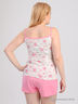 Комплект состоит из двух предметов: топ и шорты. Топ на тонких бретелях с округлым вырезом горловины. Шорты короткие на эластичном поясе. Изделия выполнены из качественного материала привлекательной расцветки. Отличный вариант на каждый день.
