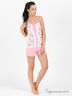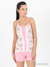 Комплект домашней одежды состоит из двух предметов, топа и шорт. Топ прямого силуэта выполнен из трикотажного материала. Изделие с округлым вырезом горловины, тонкие бретели. Изделие украшено ажурными вставками. Шорты свободного силуэта с эластичной резинкой в поясе. Качественные вещи из натурального, приятного на ощупь материала.