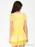 Детали: округлый вырез горловины, спинка-борцовка, отрезная двухслойная юбка с кружевной вставкой по низу изделия, кружевной кардиган с коротким рукавом, застегивается на перламутровые пуговицы