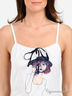 Детали: майка - тонкие бретели регулируются по длине; верх изделия на кулиске; на полочке оригинальная аппликация; юбка - широкий отрезной пояс на кулиске; карман кенгуру; низ изделия дополнен оборкой; косынка декорирована принтом - точка и контрастной тесьмой
