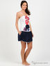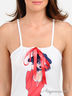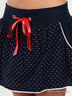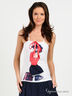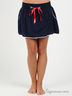 Детали: майка - тонкие бретели регулируются по длине; верх изделия дополнен кулиской с атласной лентой; на полочке аппликация с нашивкой; юбка - отрезной пояс на резинке дополнен кулиской с атласной лентой; два втачных кармана; оригинальный принт - точка