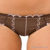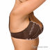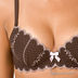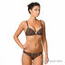 Стильный коричневый комплект в горошек. Бюстгальтер пуш -ап (формованная чашка со съемными бретелями) с нежной розовой вышивкой и декоративным бантиком в переди, который придает этому комплекту больше романтизма и легкости. Трусики стринги сшиты из однотонной стрейчевой ткани сзади.