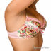 Нежный и очень романтичный комплект с трусиками стринги. Бюстгальтер пуш -ап (формованная чашка со съемными бретелями) и с прищипами спереди. Чашечки украшены розовой каемкой с рюшами, что придает более заманчивый вид. Между чашками пришит милый бантик. Трусики слип декорированы ажуром впереди. Сзади трусики выполнены из однотонной стрейчевой ткани.