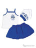 Симпатичный комплект, состоит из джемпера, юбки и косынки. Он приятный на ощупь, не сковывает движения, обеспечивая наибольший комфорт. Джемпер на тонких бретелях, украшен дизайнерским принтом. Пышная юбка имеет эластичный пояс. Косынка станет отличным завершением образа. Оригинальный дизайн и модная расцветка делают этот комплект незаменимым предметом детского гардероба.