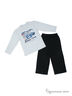 Отличный костюм для мальчика из хлопковой ткани. Состоит из лонгслива и брюк. Лонгслив с округлым вырезом и длинным рукавом декорирован оригинальным принтом на полочке. Брюки на резинке.