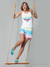 Великолепный комплект, состоящий из топа на тоненьких бретелях и шорт короткой длины. Мягкая ткань приятно обнимает фигуру, даря комфорт и уют. Комплект совмещает в себе удобство и практичность. Топ оформлен принтованным рисунком спереди.