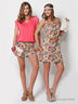 Отличный комплект, выполненный из приятного натурального материала, сделает Ваш отдых полноценным и комфортным. Комплект состоит из футболки и шортиков. Футболка с застежкой на пуговицы, с короткими рукавами и V-образным вырезом горловины. Шорты с набивным рисунком.