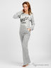 В пояс брюк, выполненных из трикотажа средней плотности, вшита резинка.