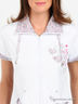 Детали: кофта - ворот на кулиске может быть как отложным так и стойкой; застегивается на молнию; два втачных кармана; короткий рукав с отворотом; декорирована вставками с принтом и вышивкой на полочке; низ изделия на резинке; брюки - посажены на резинку; два втачных кармана