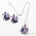 Изысканное колье в виде тонкой изящной цепочки и кулона из трех красиво переливающихся бабочек сиреневого и нежно-розового цвета. Серьги выполнены в стиле кулона.
