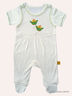 Трикотажный комплект для ребенка из двух предметов: кофточка с коротким рукавом и с кнопочками на плече, ползунки с забавным принтом.