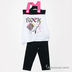 Комплект состоит из топа и лосин. Топ на широких лямках с пришитыми пуговицами в качестве декора. Украшен оригинальным принтом с камнями, по подолу широкая резинка с небольшой сборкой. Классические лосины с поясом резинкой.