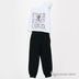 Комплект состоит из брюк и топа. Топ на одно плечо, ворот выполнен широкой трикотажной резинкой, короткий рукав слегка присборен, оригинальный принт на полочке, низ изделия широкая резинка. Брюки прямого кроя с широким поясом резинкой, прорезные кармашки, низ брючин посажен на широкую трикотажную резинку.