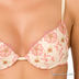 Бюстгальтер на косточках с эффектом push-up с гелевым уплотнителем. Вертикальные швы на чашечках. Бретели регулируются по длине. Застежка на два крючка. Украшен кружевом и вышивкой.