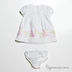 Комплект для девочки, состоящий из:Платье А-силуэта, на кокетке, с рукавами-фонариками. Украшено нежной вышивкой и ажурной лентой. Застегивается на молнию.