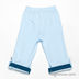Брюки прямого кроя. В пояс вставлена резинка. Контрастная прострочка имитирует передние карманы и застежку на молнию. Декоративные отвороты. Изделие украшено нашивкой-аппликацией.