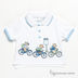 Футболка прямого кроя с коротким рукавом и отложным воротом застегивается на три кнопки на полочке. Полочка декорирована вышивкой.