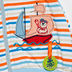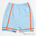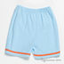 Шорты прямого кроя. В пояс вставлена резинка. Изделие украшено контрастными полосами.