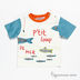 Футболка прямого кроя с коротким рукавом застегивается на две кнопки на левом плечике. Полочка украшена аппликациями и нашивкой.