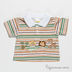 Футболка прямого кроя с коротким рукавом и отложным воротником застегивается на две пуговицы на полочке. Полочка украшена нашивками и вышивкой.