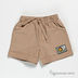 Шорты прямого кроя. В пояс вшита резинка, имитация регулирующего шнурка. Контрастная прострочка. Два передних кармана. Имитация задних карманов. Декоративные отвороты. Брючина украшена нашивкой.
