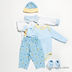 Комплект состоит из боди, курточки, брюк, шапочки и пинеток.
