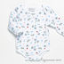Боди прямого кроя с длинным рукавом застегивается на классическую боди-застежку. Изделие декорировано множеством мелких принтов.