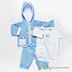 В комплект входят: брюки на резинке, боди, кофточка с капюшоном на молнии.