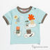 Футболка прямого кроя застегивается на две кнопки на левом плечике. Полочка украшена нашивками и аппликациями.