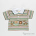 Футболка прямого кроя с коротким рукавом и отложным воротником застегивается на две пуговицы на полочке. Полочка украшена нашивками и вышивкой.