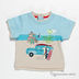 Футболка прямого кроя с коротким рукавом и эффектом двойки застегивается на три пуговицы на спинке. Полочка украшена аппликациями, вышивкой и нашивками.