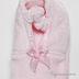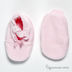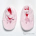 Велюровые пинетки держатся на ножке за счет резинки. Изделие украшено атласными бантиками.