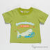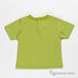 Футболка прямого кроя с коротким рукавом застегивается на две кнопки на спинке. Полочка украшена нашивками, вышивкой и аппликациями.