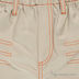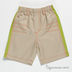 Шорты прямого кроя. В пояс вшита резинка, пришиты шлевки. Контрастная прострочка. Один задний карман. Трикотажные вставки по боковым швам.