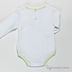 Боди прямого кроя с длинным рукавом застегивается на классическую боди-застежку на кнопках и застежку на две пуговицы на спинке. Полчка украшена нашивкой и вышивкой.