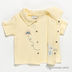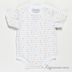 Боди прямого кроя с коротким рукавом застегивается на классическую боди-застежку и застежку на кнопку на левом плечике. Изделие украшено множеством мелких принтов.