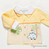 Комплект состоит из боди, кофточки, брюк, шапочки и пинеток.