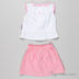 Топ прямого силуэта на лямках. Кулиска с регулирующим шнурком. Застежка на две пуговицы на спинке. Вырез горловины и лямки декорированы рюшей. Вышивка на полочке.