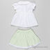 Расклешеная блуза с отложным воротом и коротким рукавом застегивается на пуговицы. Декоративные складки, вышивка.