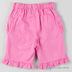 Шорты прямого силуэта. В пояс вставлена резинка, пришиты шлевки. Два боковых кармашка. Низ брючин украшен оборкой. Декоративная аппликация.
